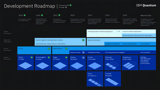 在全球拥有20多台量子计算机的IBM,除了构建自身量子计算机生态体系,更是放眼整个行业的繁荣,试图引领计算范式的发展,这也可以从IBM在今年5月公布的最新量子计算技术发展路线图中窥见一二。
